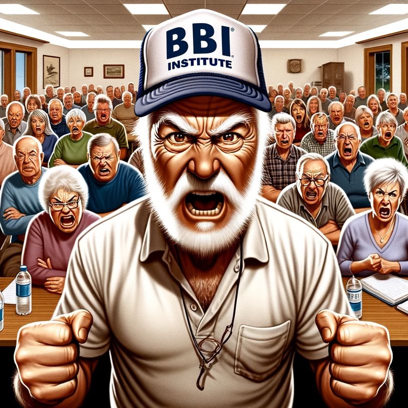 Here we see BarkBack leader Tommy Oldtoot leading the RELEASE THE RAGE portion of a BBI Anger Management course. In general, Anger Management is an important element in the BBI line-up of tools aimed at preserving sanity while pursuing solutions.